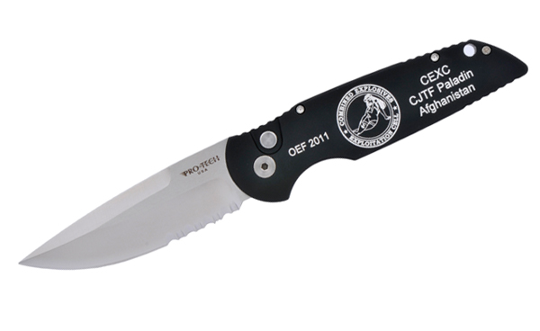 J4 Runt-Chula Vista / custom laser engraved Pro-Tech knives are the perfect commemorative item for your group – call us for more information.