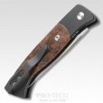 The Pro-Tech Brend Auto comes in 3 sizes and features the famous Walter Brend Model 1 blade shape. This blade grind narrows rapidly, making a thin slicing edge that makes quick work of any cutting task, while the belly of the blade gives plenty of edge that can be used to cut at various angles. The reverse swedge on the spine of the blade runs up the entire blade and terminates at the trailing point tip, further mitigating cutting friction while providing a sharp tip that excels at cutting chores. This legendary blade shape is designed to get whatever work you may need done quickly and efficiently. The handle uses gentle slopes to index the hand, along with a pinky choil to aid with cutting power and support accurate cutting. Whether you prefer the large, medium, or small version of the Brend, this knife will handle any task you throw at it!