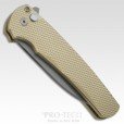 The Pro-Tech Malibu is our exciting entry into the manual flipper market. The Malibu comes in two blade shapes: a Reverse Tanto or Wharncliffe. Featuring premium CPM 20cv or Magnacut blade steel for unbelievably long edge retention and strength, and have a high flat grind to provide a razor cutting edge that terminates in a fine piercing tip. The overall aesthetic of the blade is kept free from markings on the front and back show sides. The Pro-Tech makers mark and steel stamp have been hidden from view on the spine of the knife, providing a clean form devoid of superfluous markings. The handle features thoroughly developed ergonomics designed to comfortably fit any size hand; sporting a gently curved spine with finger indexing set into the chamfer on the front of the handle. A mini deep carry clip ensures that this slender knife carries discreetly.